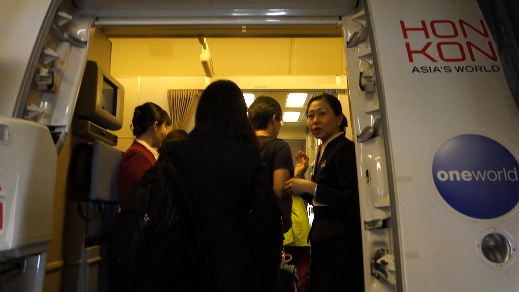The agent who escorted me in asked me what I wanted to drink. Knowing the amazing food and Dom waiting for me on board, I decided to just get a bottle of water. Shortly, it was time to board for my 15 hour flight to Hong Kong.