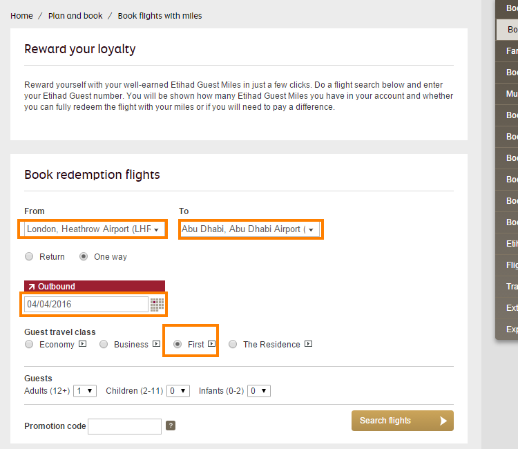 How to book Award Space on Etihad