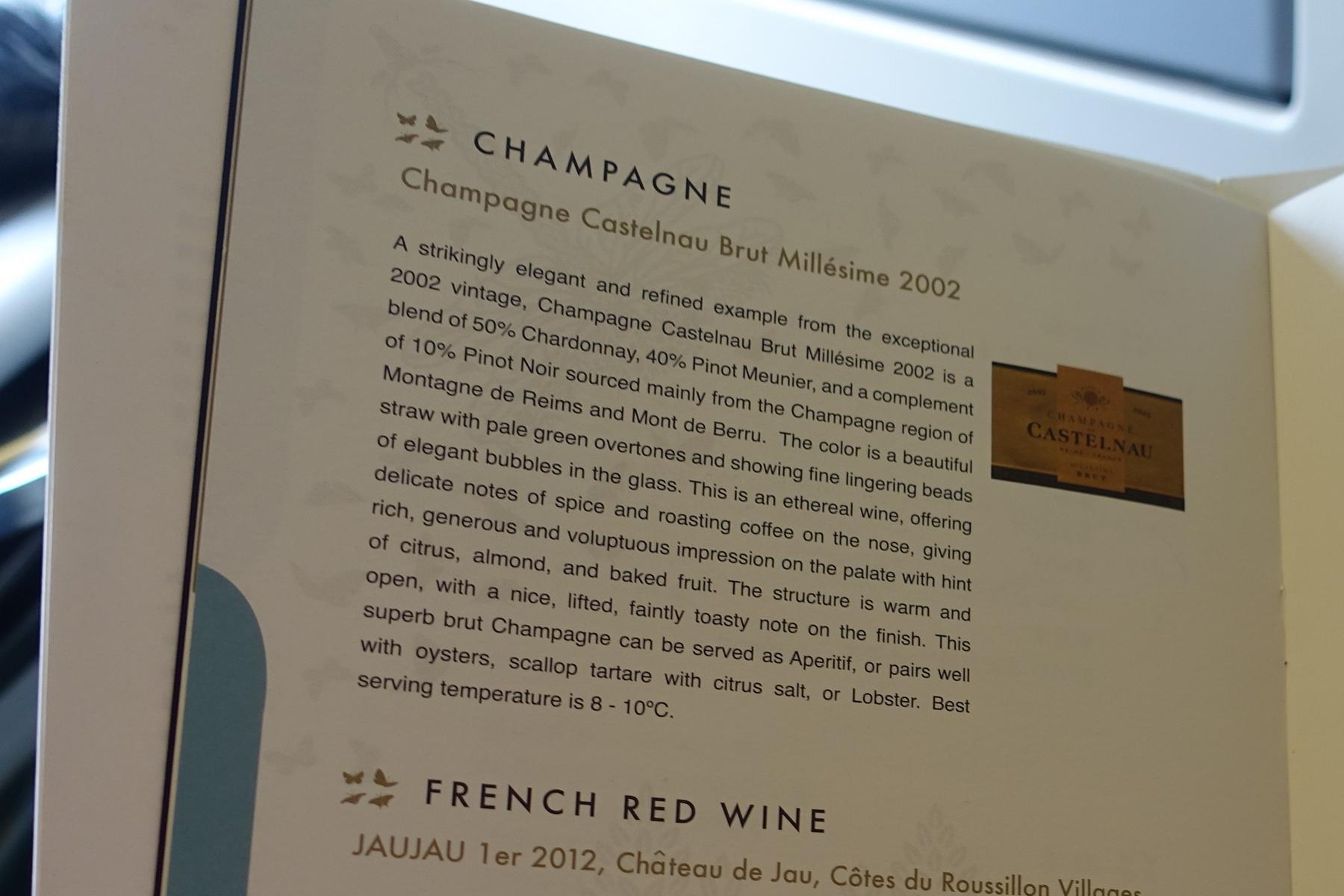 Later I found out the champagne being served in-flight was a 2002 Millesime Brut champagne, which is amazing champagne for such a short flight.