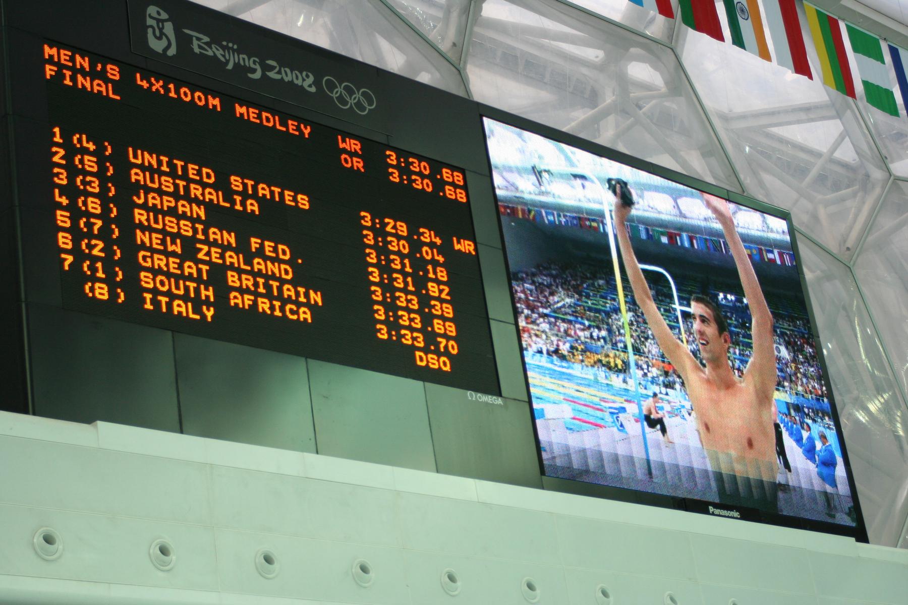 Michael Phelps go for gold at an event in the Water Cube.