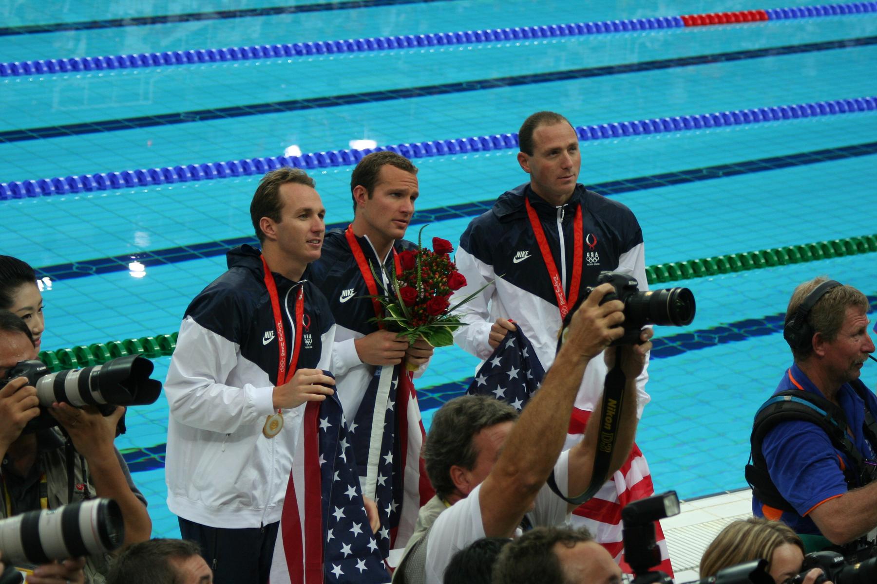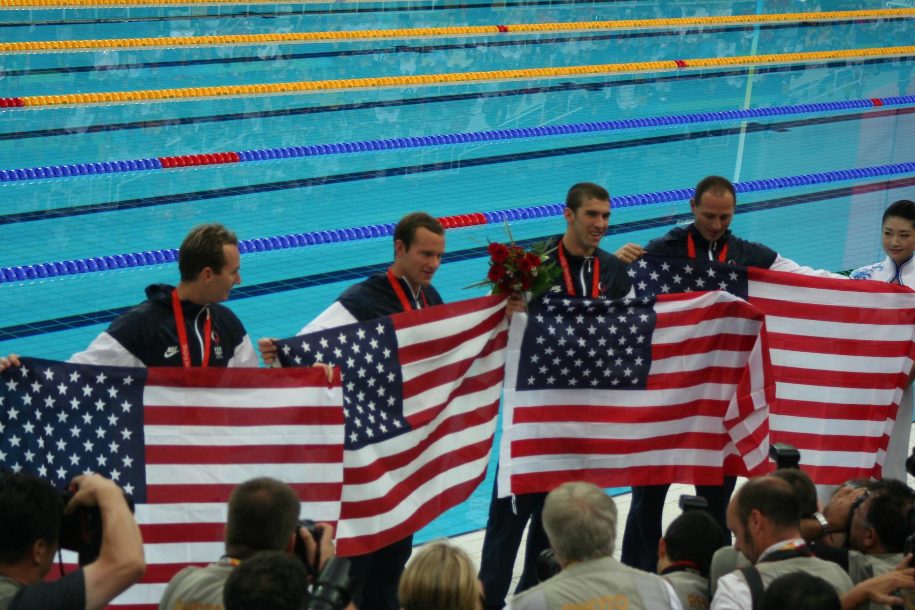 Soon after the medal ceremony the US swimmers came over to