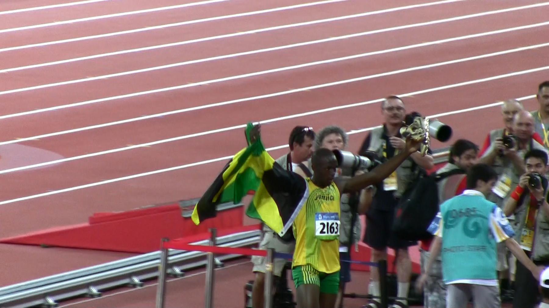 stadium, with fans straining to catch glimpse of the world’s fastest man.
