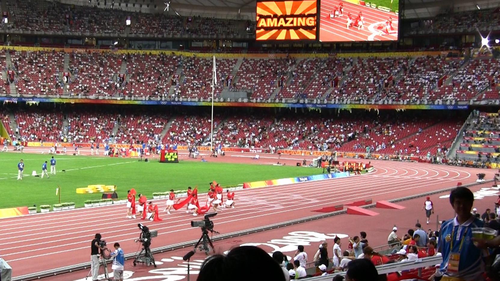 red lit stadium, cheers were still echoing within the Bird’s Nest.