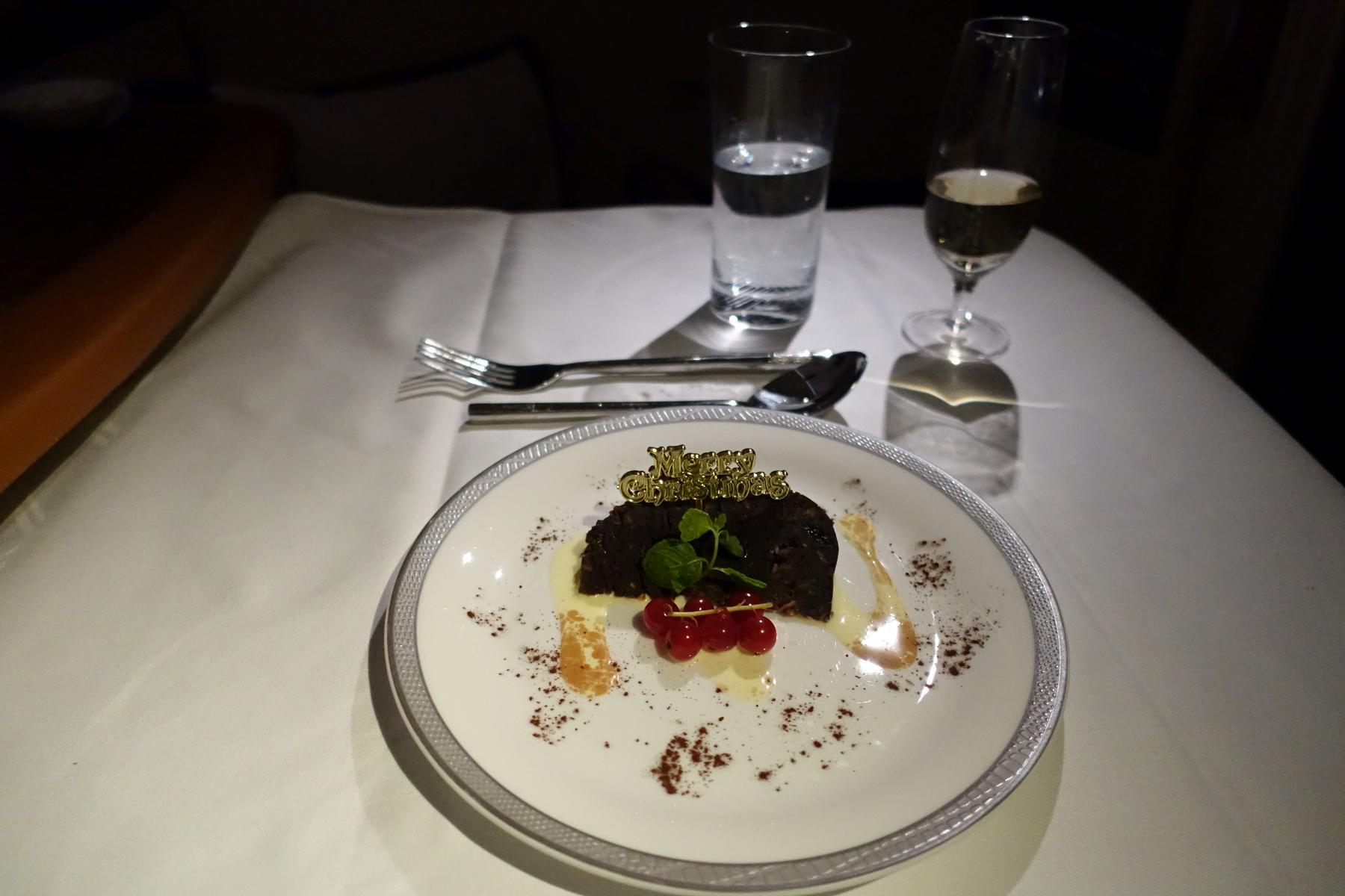 Christmas cake along with another glass of Champagne.