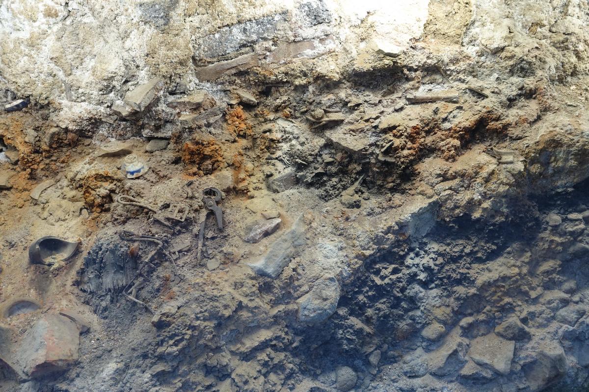 Nearby, an unexcavated portion of the rubble is displayed.