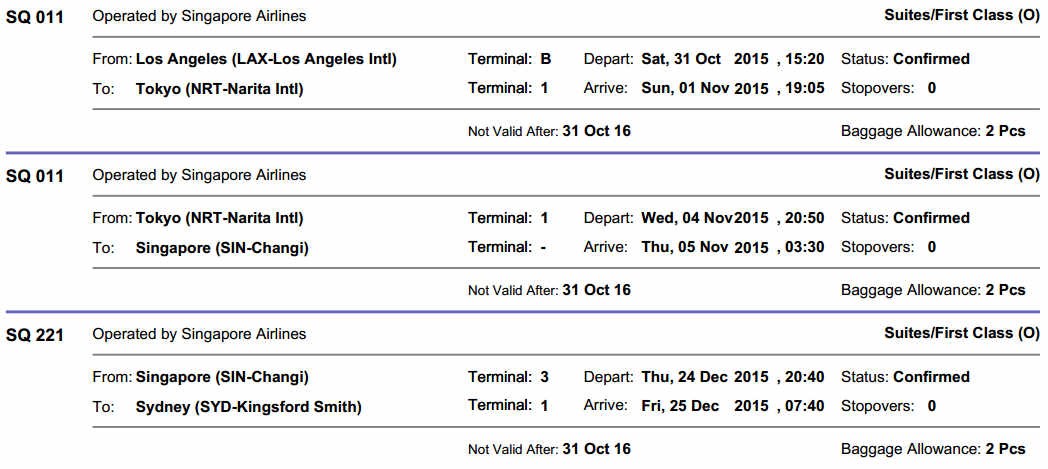 I was personally able to book a flight from Los Angeles to Sydney, with stopovers in both Tokyo and Singapore, allowing me to explore