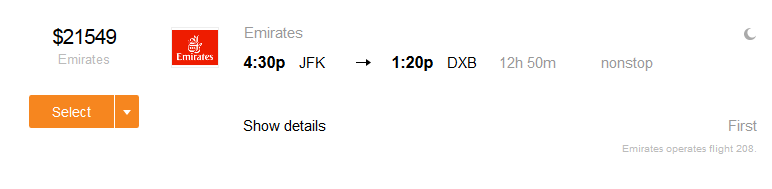 The retail cost for a flight from New York to Dubai is over $20,000 one way.